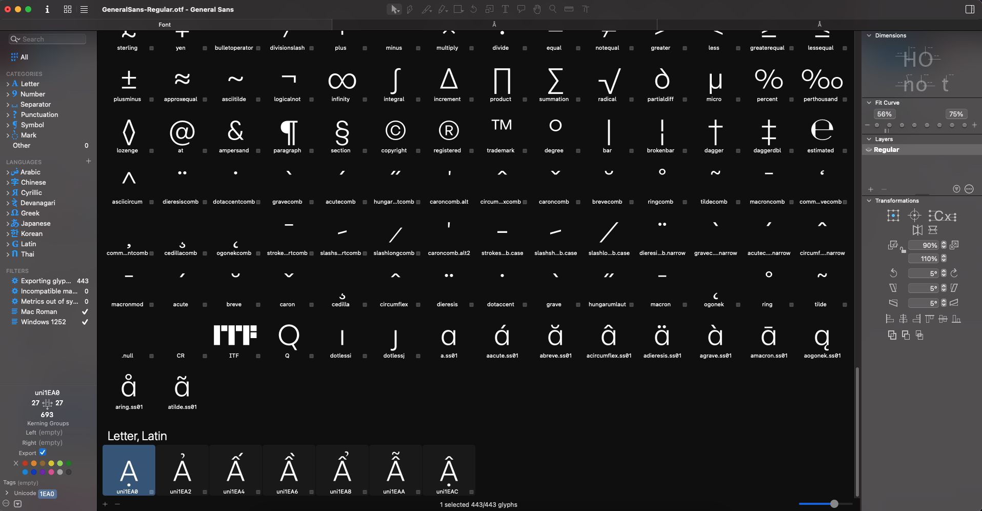 Ở bài này mình sẽ sử dụng phần mềm Glyphs để Việt hoá font General Sans.