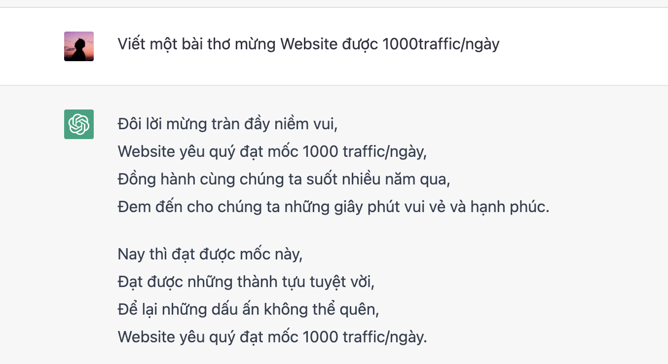 Không nên. ChatGPT làm thơ Tiếng Việt dở lắm các bạn.