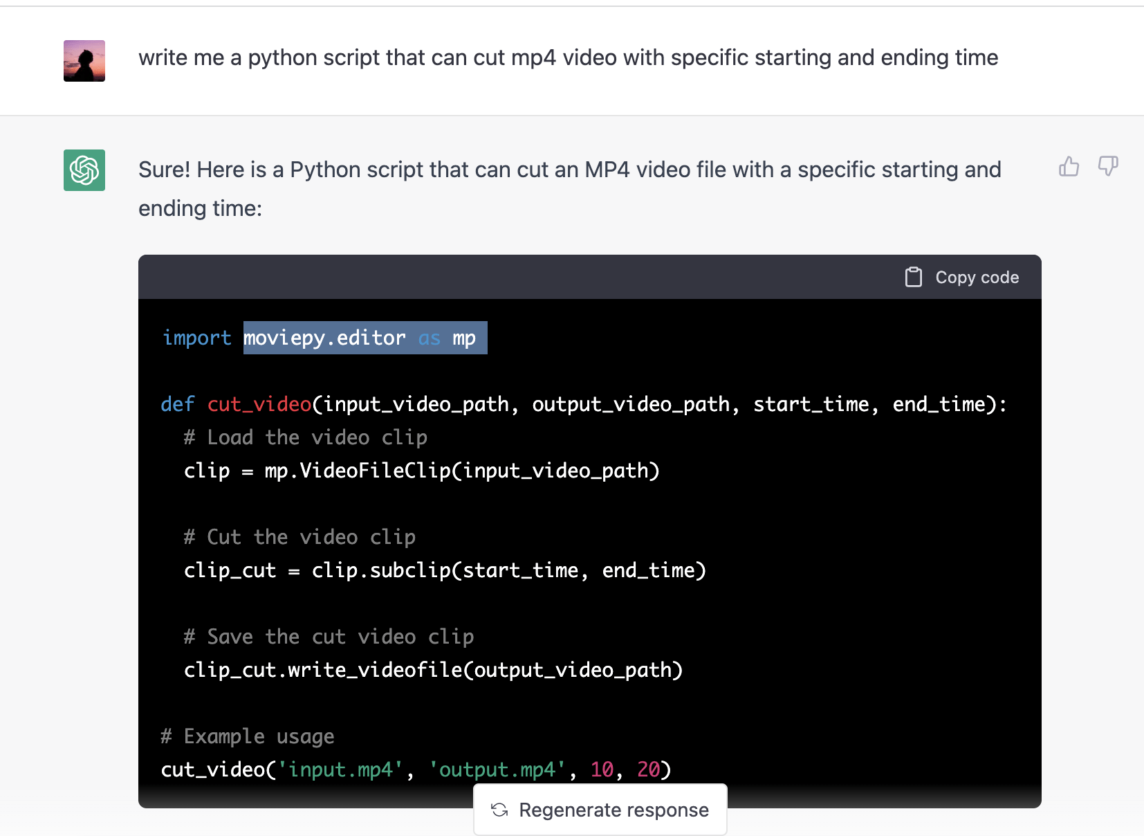 Hãy nhờ người bạn thân ChatGPT viết cho bạn một đoạn script Python để cắt video mp4, trực tiếp tại máy của bạn.