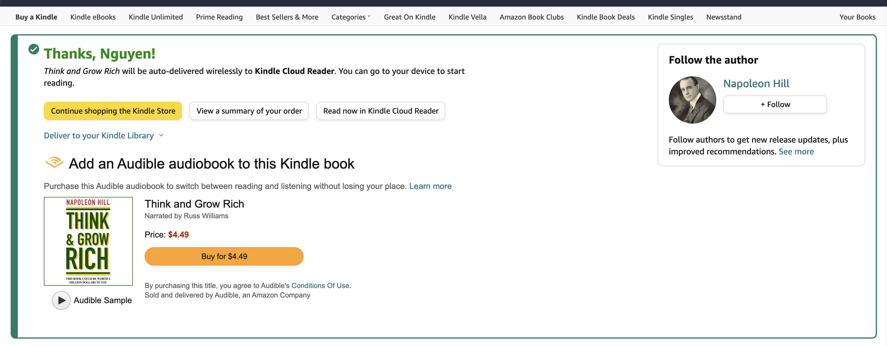 Link mua miễn phí với giá 0$: https://www.amazon.com/Think-Grow-Rich-Illustrated-Napoleon-ebook/dp/B079H2CMT2/