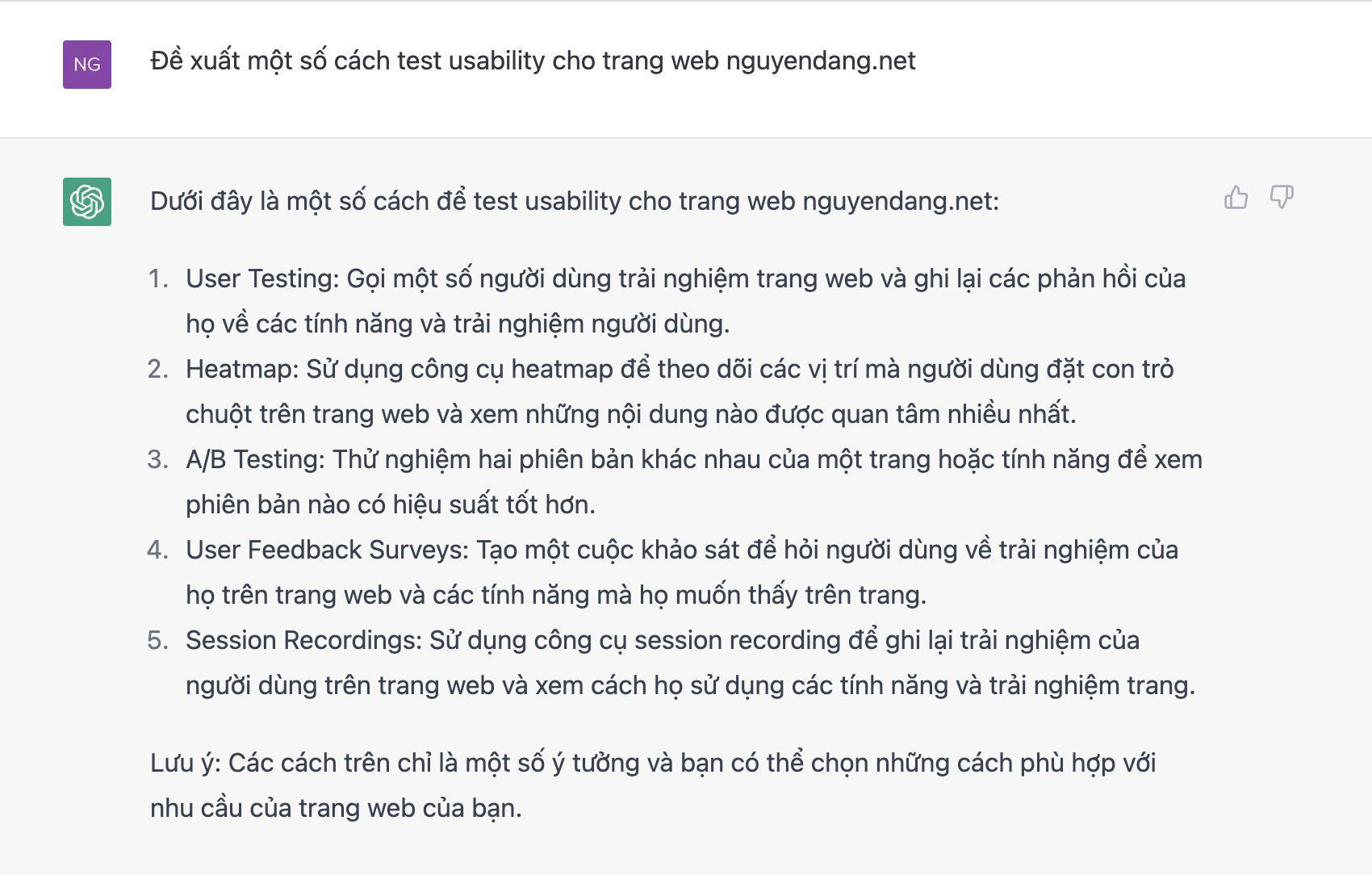 Lựa chọn đúng phương pháp kiểm tra khả năng sử dụng có thể tối ưu hóa sản phẩm một cách đáng kể. Bạn có thể tìm kiếm đề xuất test usability từ ChatGPT