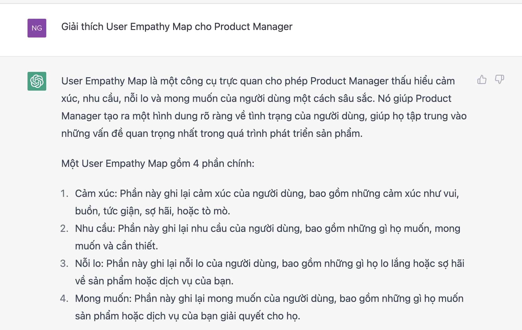 Chúng ta có xu hướng rất thiên vị bởi các thuật ngữ chúng ta sử dụng hàng ngày. User Empathy Map, User Journey, SUS, CTA, v.v. là những thuật ngữ mà AI có thể dễ dàng giải thích.